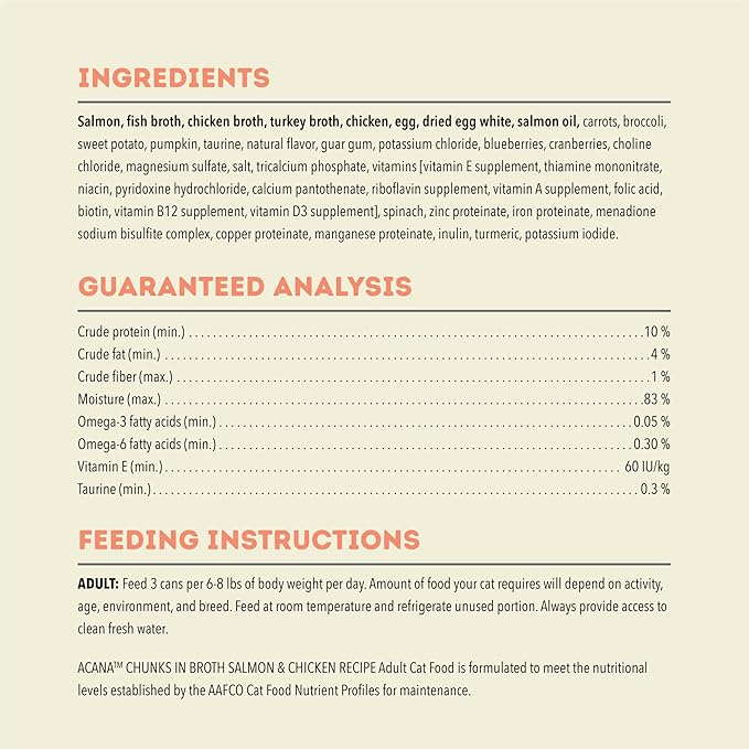 ACANA Chunks in Broth Wet Cat Food Salmon & Chicken Recipe 3oz Cans (12 Count)