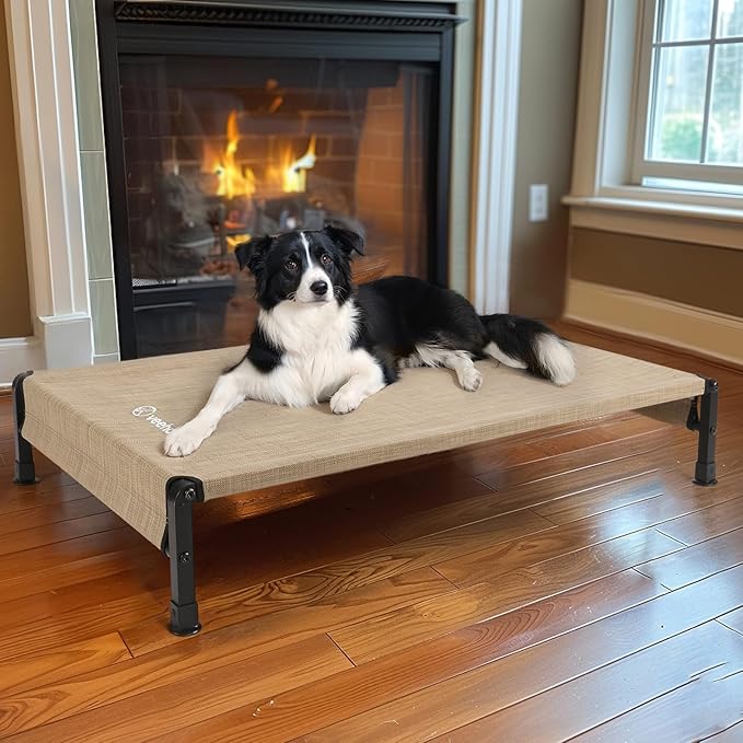 - All-Season Comfort: This raised dog bed features a breathable Teslin mesh center, enhancing airflow to keep your pet cool in summer. Elevated design ensures a cleaner, dryer, and healthier sleeping experience compared to the ground, providing cozy comfort year-round.