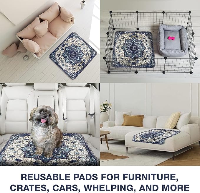 - Multi-Purpose Reusable Dog Pee Pads for Housebreaking, Whelping, and Travel: These large washable pee pads are perfect for multiple usesโpuppy house training, whelping pads for dogs giving birth, senior dog incontinence pads, or as protective covers for car seats and pet carriers. Suitable for small, medium, and large breed dogs.