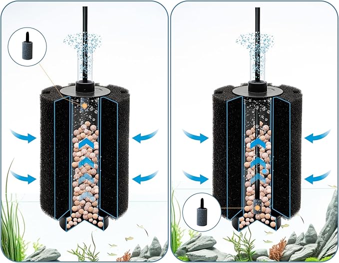 - Easy top set up & clean: simply install an airline into the unit and turn on the air pump, simply rinse and squeeze sponge in tank water