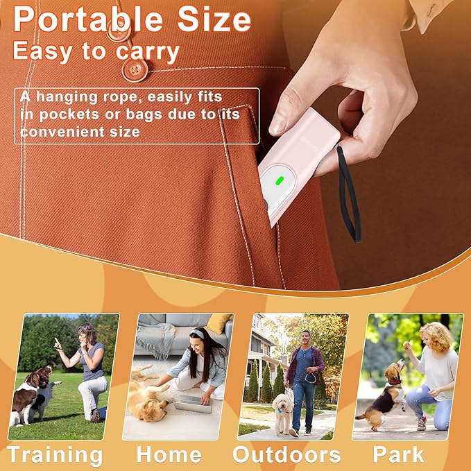 - 【COMPACT AND PRACTICAL PET CONTROLLER ON THE GO】 The compact and lightweight design with a wrist strap makes it easy for pet owners to take the bark deterrent with them wherever they go without adding to the burden. Whether on a busy city street or a quiet country lane, this anti dog barking device can be taken out and used at any time to help manage and guide your pet's behavior, allowing pet owners to enjoy their time with their pets with more confidence and ease.