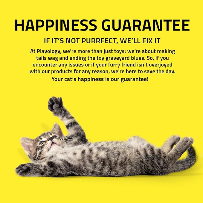 - HAPPINESS GUARANTEE: Everyone at Playology remains committed to designing and developing the best, safest and healthiest toys we possibly can. At Playology, we're more than just toys; we're about making cats purrfectly happy. So, if you encounter any issues or if your furry friend isn't overjoyed with our products for any reason, reach out. Your cat's happiness is our guarantee!
