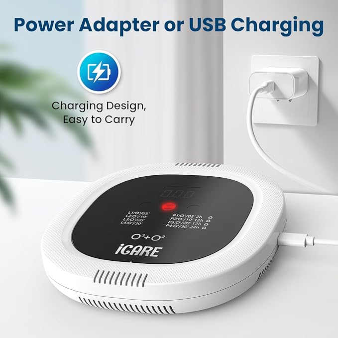 - Rechargeable Ozone Machine: Air ionizer features a powerful 10,000 mAh battery, lasting one week in P1, P3, and P4 modes, and two weeks in P2 mode. It’s USB rechargeable, energy-efficient, and wireless. Ideal for deodorizing hotel rooms, towels, bedding, clothes, or luggage while traveling. For home use, simply place it on your desk, wall, or shelf.