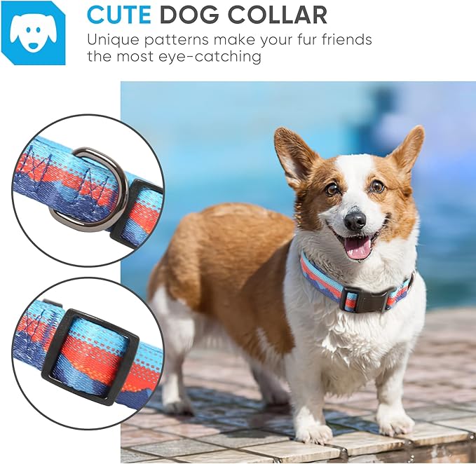 - 【Unique Design】 - A double-layer unique pattern made with fade-resistant sublimation printing for a more diverse and personalized option for your beloved dog. From teacups to giant breeds, boy dogs or girl dogs, we have a special collar pattern that will show your pet’s unique personality.