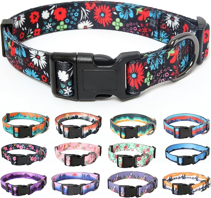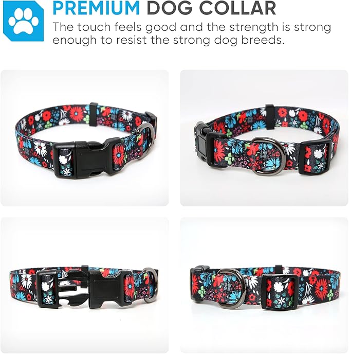 HEELE Dog Collar, Adjustable Soft Dog Collar for Small Medium Large Dogs,Floral Patterned Puppy Collars with Quick Release Buckle M Length 13.39''-20.87''