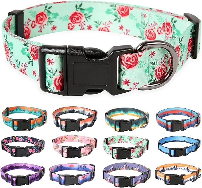 HEELE Dog Collar, Adjustable Soft Dog Collar for Small Medium Large Dogs,Floral Patterned Puppy Collars with Quick Release Buckle L Length 15.94''-25.59'