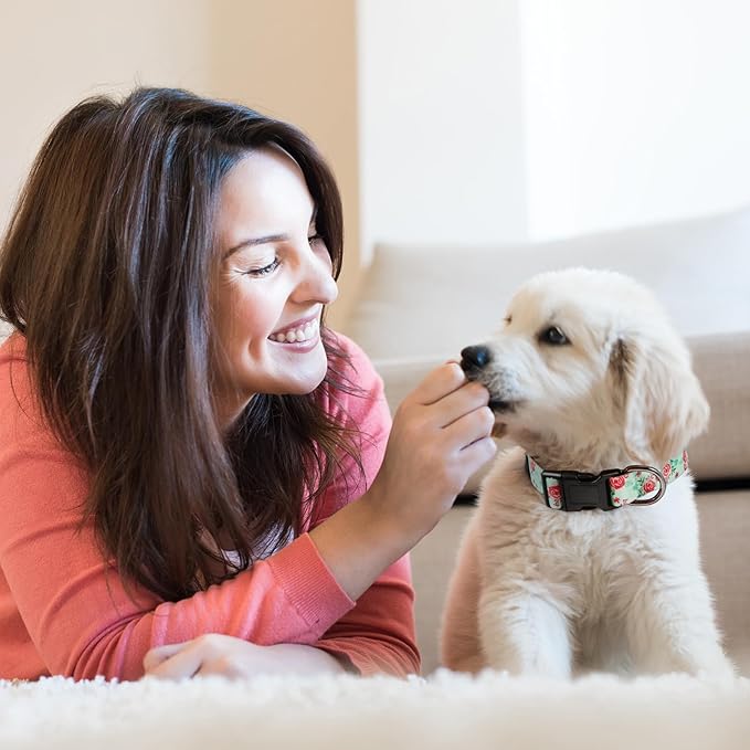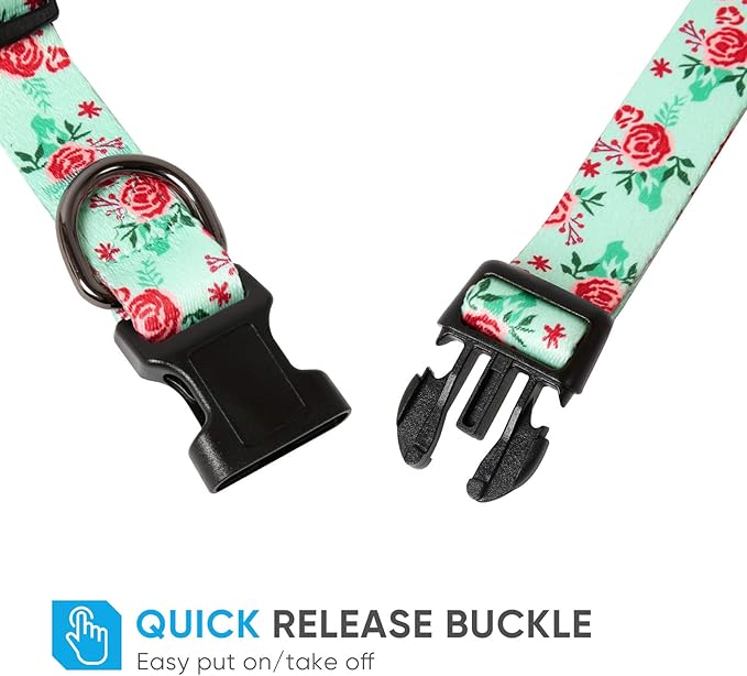 HEELE Dog Collar, Adjustable Soft Dog Collar for Small Medium Large Dogs,Floral Patterned Puppy Collars with Quick Release Buckle XS Length 8.5''-11''