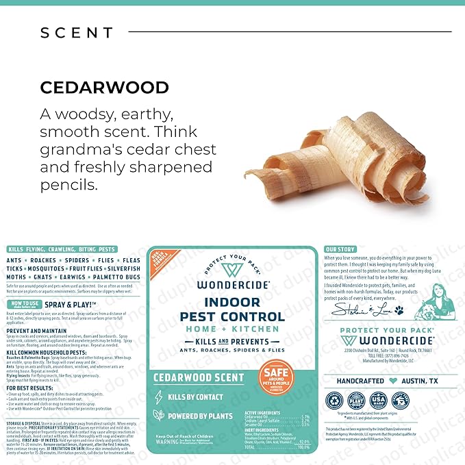 Wondercide - Indoor Pest Control Spray for Home and Kitchen - Ant, Roach, Spider, Fly, Flea, Bug Killer and Insect Repellent - with Natural Essential Oils - Pet and Family Safe — Cedarwood 16 oz