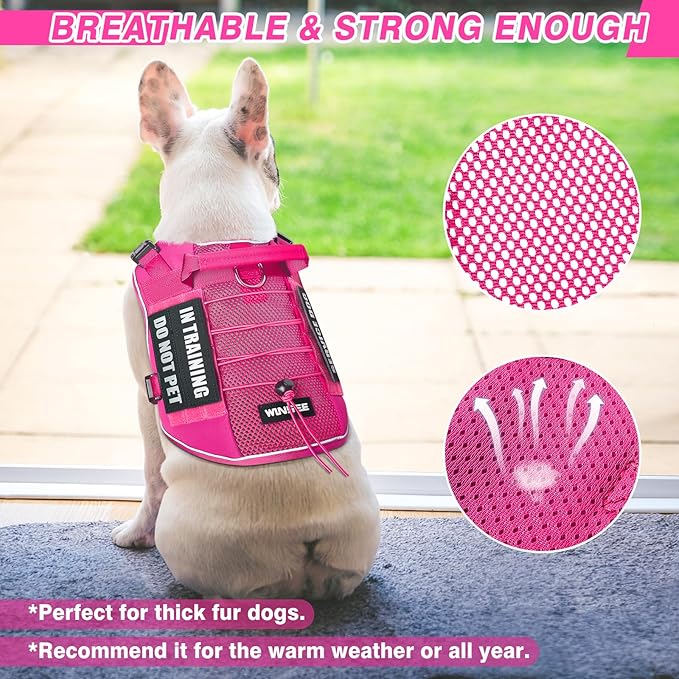 - 【Mesh Design Harness with 10 Dog Patches】: This tactical dog harness with Soft breathable mesh helps dog to have extra airflow, quick to dry for all seasons. Aire mesh harness have a good fit and extra stability. The package contains a WINSEE dog vest harness and 5x2 pieces of dog patches with sewed letters, such as “Service dog”, “do not pet”, “in training”, “emotional support” and “Service dog in training”, enough quantity for you to decorate the dog’s vest harness.