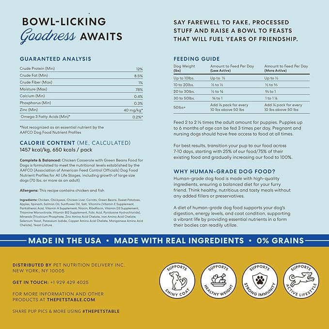 The Pets Table Human-Grade Chicken Casserole Fresh Dog Food, Dog Food Topper or Complete Meal, 6 Count of 34-oz Pouches, 12.7lbs