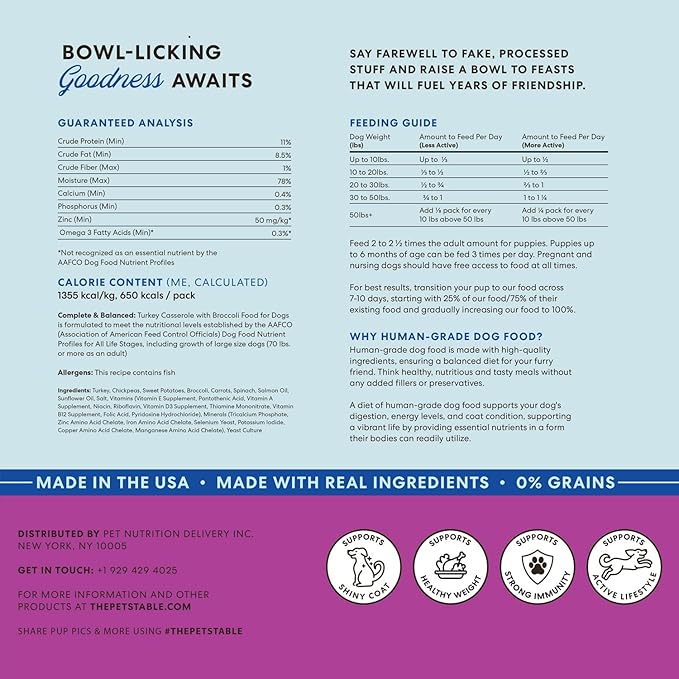The Pets Table Human-Grade Turkey Casserole Fresh Dog Food, Dog Food Topper or Complete Meal, 9 Count of 36-oz Pouches, 20.5lbs