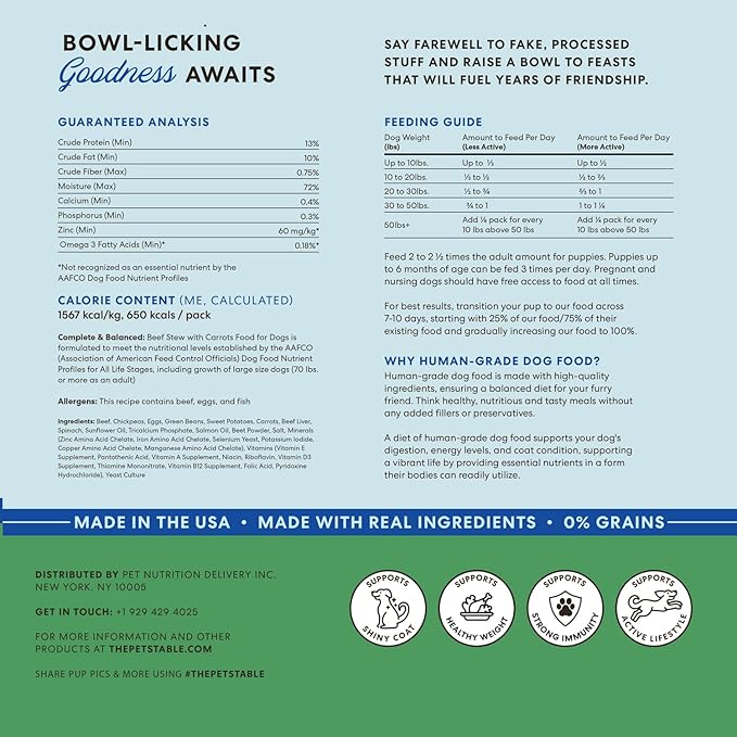 The Pets Table Human-Grade Beef Stew Fresh Dog Food, Dog Food Topper or Complete Meal, 6 Count of 15-oz Pouches, 5.5lbs