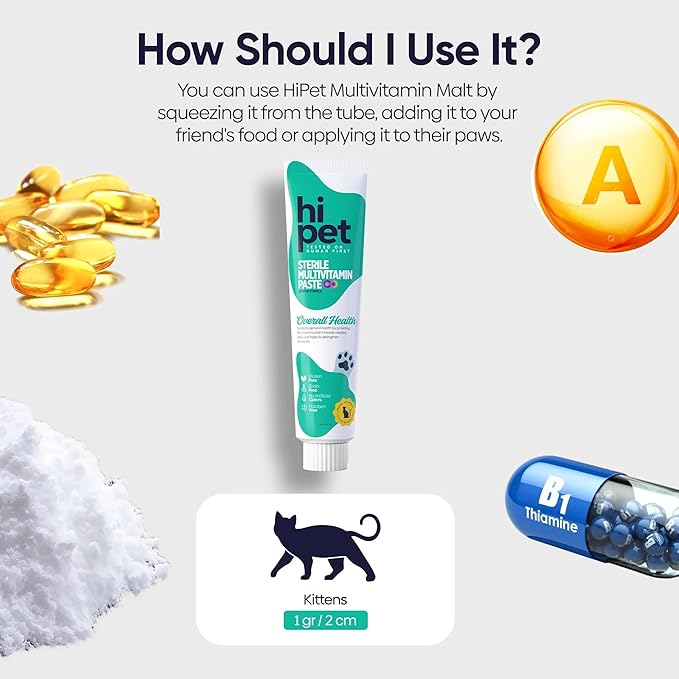 Hi Pet Multivitamin Cat Malt, Cat Treats Lickable, Supports Immune System, Metabolism, Dental Health, Weight Control, Iron for Cats, 2.65 Oz (Pack of 3)