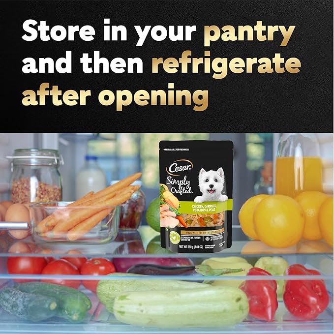 - Resealable Packaging: This Cesar Simply Crafted Wet Dog Food Complement is packaged in a resealable pouch to help keep it fresh and easy to refrigerate after opening