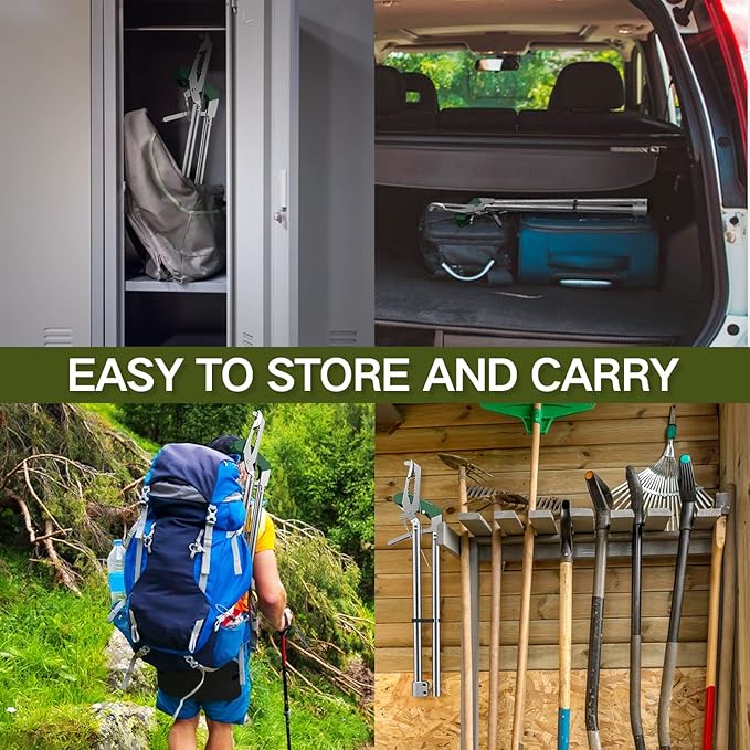 - [Foldable & Portable] - The 78‘’ length snake tong can be folded as 40‘’ length after you unlock the snap in the middle of the pipe, consuming less space in your room or car, much easier for using or storage. It also can be used as a pick-up tool to grab something without bending your waist.
