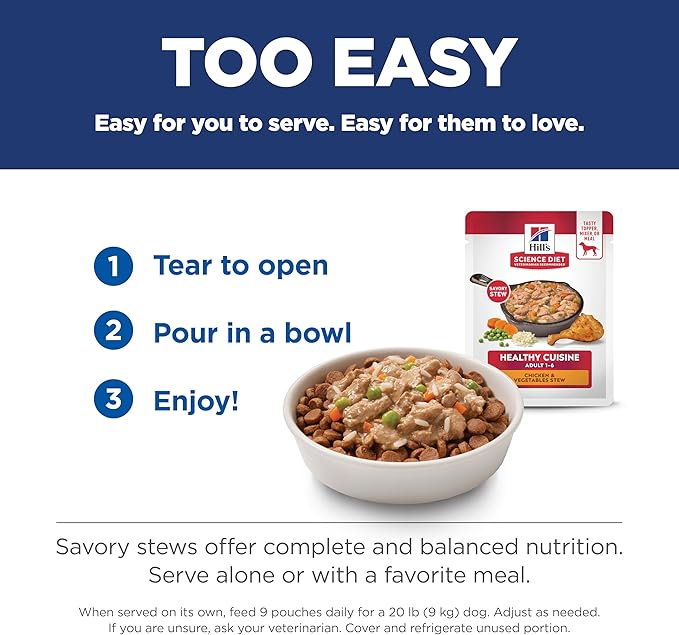 Hill's Science Diet Healthy Cuisine, Adult 1-6, Great Taste, Wet Dog Food, Chicken & Vegetables Stew, 2.8 oz Pounch, Case of 24