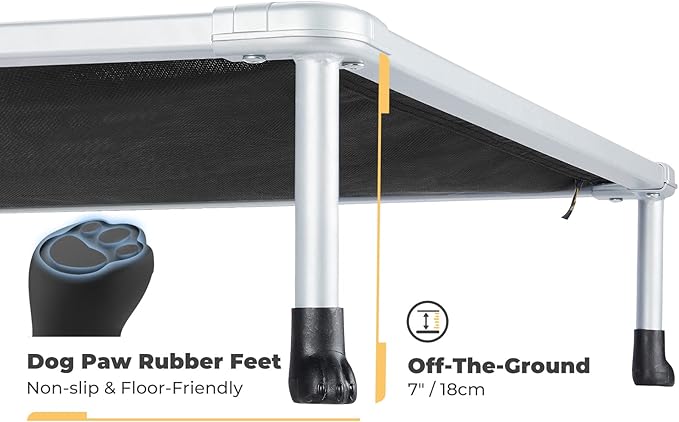 - Elevated Comfort: Raised 7 inches off the ground to promote airflow, keeping your pet cool, dry, and clean. Ideal for avoiding damp surfaces and providing a healthier resting environment