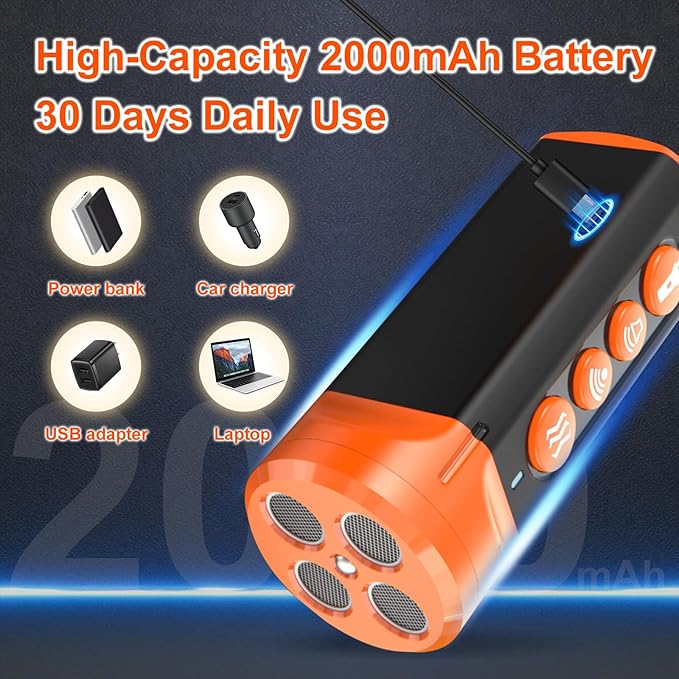 - High-Capacity 2000mAh Battery Life: With a Type-C fast charging port, UBEIYI dog bark deterrent device reaches a full charge in just 2 hours and provides up to 30 days of regular use on a single charge, along with 180 days of standby time. Whether you're correcting anti barking behavior or training your dog in public places, you’ll always be prepared for any situation. Forget the hassle of frequent charging and enjoy reliable, long-term barks no more support