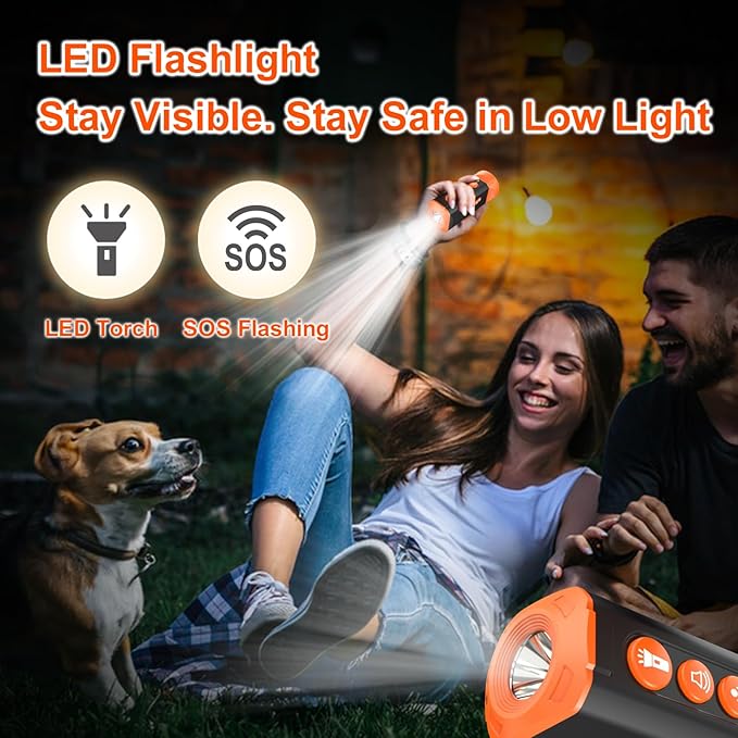- Ultra-Compact Design with LED Torch & SOS Flashing: Weighing just 0.4 lb (180g), our dog bark deterrent device is lightweight and ultra-compact, easily fitting into your pocket, bag, or hand for quick access. Whether you're on daily walks, outdoor adventures, this portable design easily stops dog bad behaviors. The built-in LED flashlight offers added visibility for evening use, while the SOS flashing mode provides an extra layer of safety in emergencies or low-light environments.