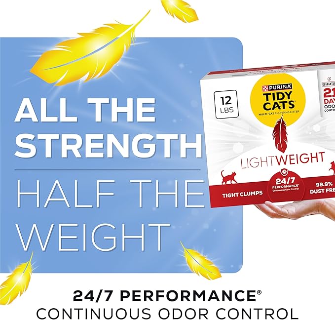 Purina Tidy Cats Lightweight, Low Dust, Clumping Cat Litter Odor Control 24/7 Performance Multi Cat Litter - 12 lb. Box