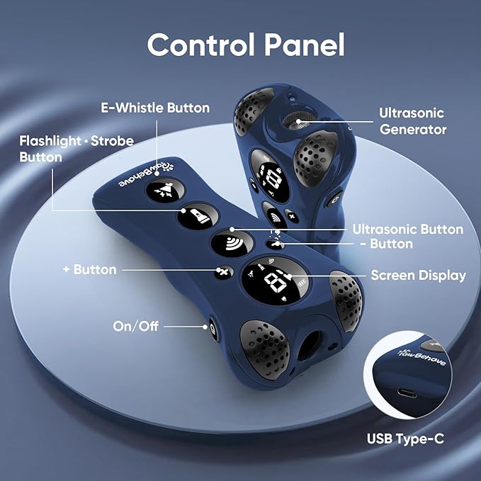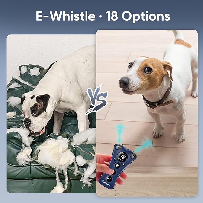 Adjustable Ultrasonic Dog Trainer–World's First Variable Frequency Pet Behavior Corrector with 10 Level Ultra Sound, 18 Dog Whistles, Anti-Bark Flashlight, Safe and Humane Deterrent (Blue)