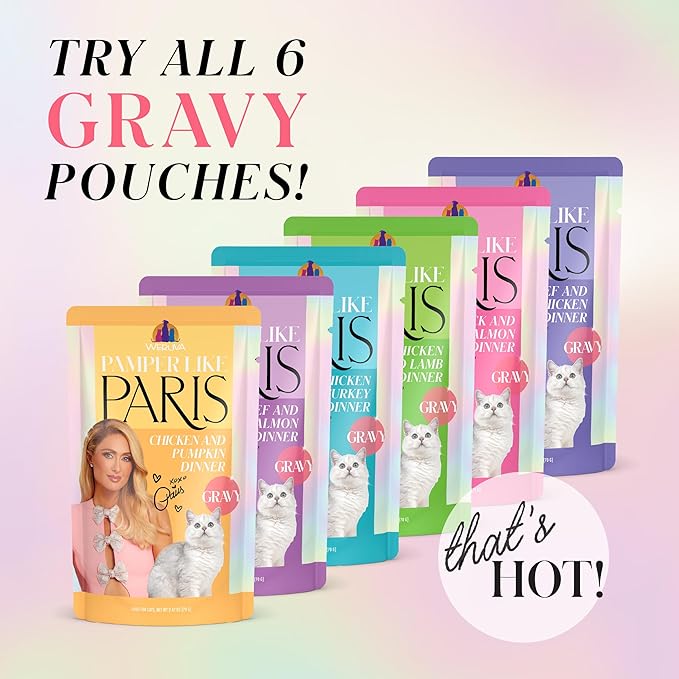 - Paris Hilton Pamper Like Paris Wet Cat Food by Weruva with Grass Fed Beef and Cage Free Chicken in Gravy (2.47oz Pouch, Pack of 12)