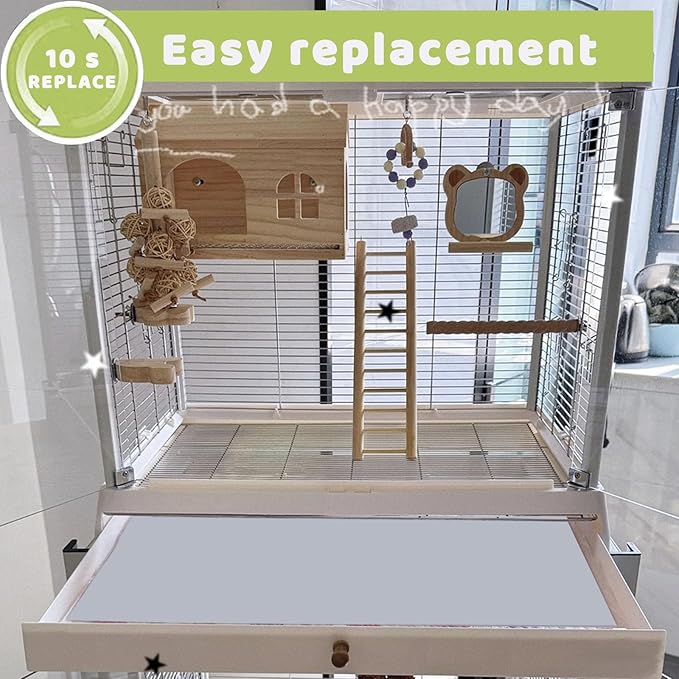 - 🪶Easy to Use: Our product contains 120 sheets of paper bird cage liner, just put the paper in the cage pan, take out bird cage liner papers when cleaning the birdcage, save your time and effort.