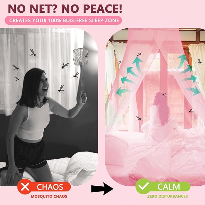 - High-quality Material: Mosquito bed net is made of polyester, ensuring its durability; its fine mesh not only acts as an effective screen to block mosquitoes and others, but also ensures proper air circulation, allowing you to sleep comfortably.