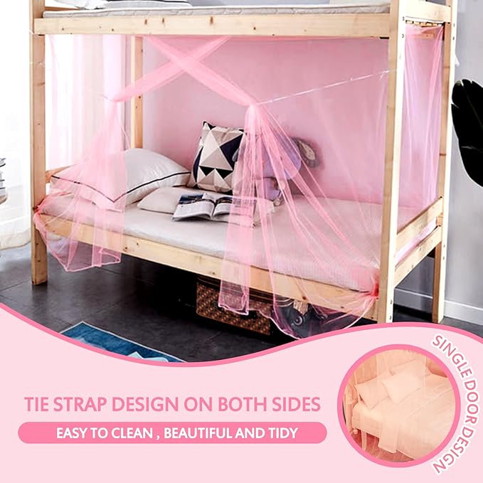 4 Corners Pink Rectangular Mosquito Net for Bed Mosquiteros para Camas Bed Netting Canopy Mosquito Mesh for Camping Outdoor Travel Dormitory Home Bedroom Decor L79 X W59 X H71 Inch