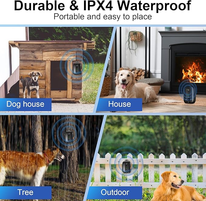 - 【Durable outdoor design】: This bark control device outdoor is made of weather resistant materials to ensure stable operation under various weather conditions. Whether it's rainy or sunny days, the equipment can maintain good operating condition. Especially for users with large gardens or terraces, the wide coverage of the device ensures effective suppression of barking even at long distances, making it an ideal choice for long-term use.