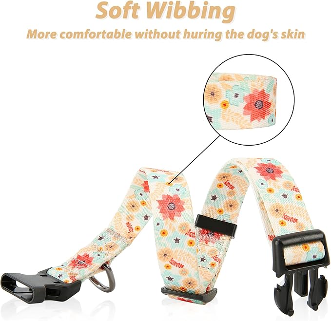 HEELE Dog Collar, Adjustable Soft Dog Collar for Small Medium Large Dogs,Floral Patterned Puppy Collars with Quick Release Buckle Galsang White S Length 9.84''-14.96'