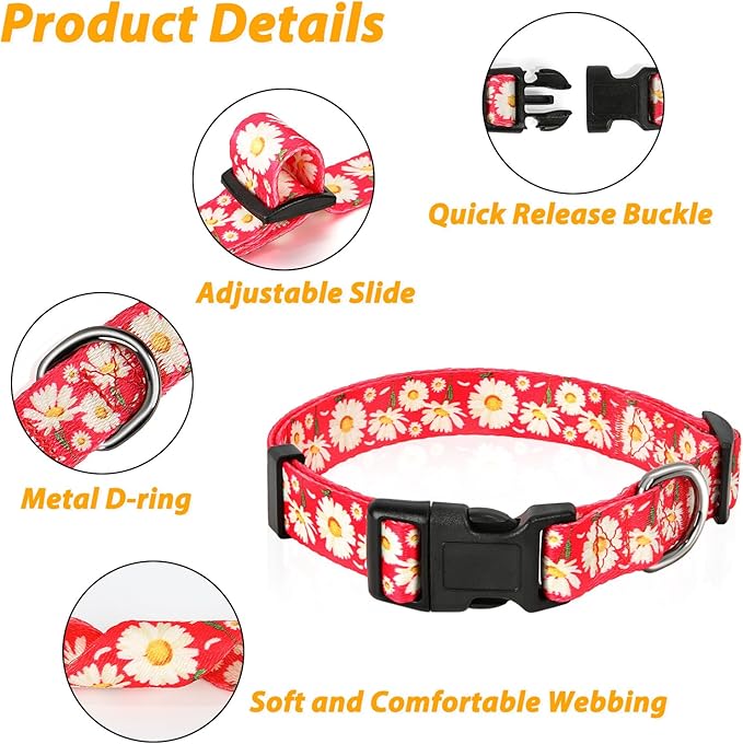HEELE Dog Collar, Adjustable Soft Dog Collar for Small Medium Large Dogs,Daisy Floral Patterned Puppy Collars with Quick Release Buckle Daisy Red S Length 9.84''-14.96'