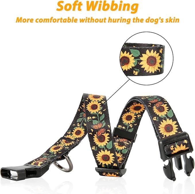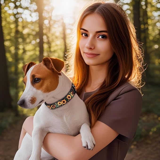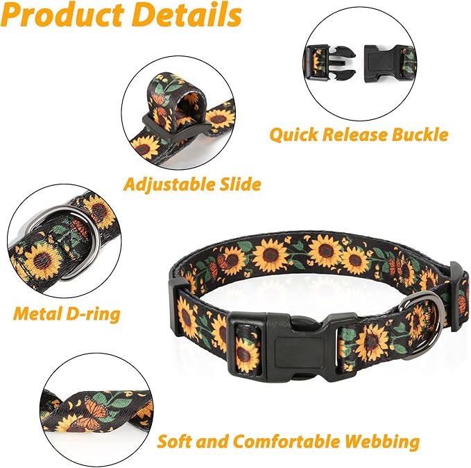 HEELE Dog Collar, Adjustable Soft Dog Collar for Small Medium Large Dogs,Sunflower Floral Patterned Puppy Collars with Quick Release Buckle Sunflower Black S Length 9.84''-14.96'