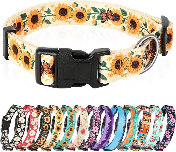 HEELE Dog Collar, Adjustable Soft Dog Collar for Small Medium Large Dogs,Sunflower Floral Patterned Puppy Collars with Quick Release Buckle Sunflower Yellow M Length 13.39''-20.87''