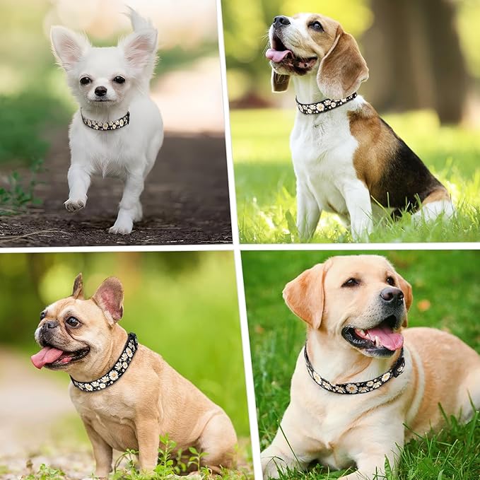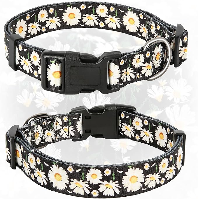 HEELE Dog Collar, Adjustable Soft Dog Collar for Small Medium Large Dogs,Daisy Floral Patterned Puppy Collars with Quick Release Buckle Daisy Black M Length 13.39''-20.87''