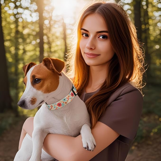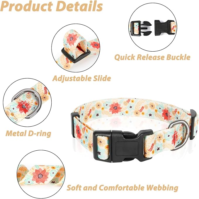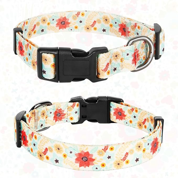 HEELE Dog Collar, Adjustable Soft Dog Collar for Small Medium Large Dogs,Floral Patterned Puppy Collars with Quick Release Buckle Galsang White M Length 13.39''-20.87''