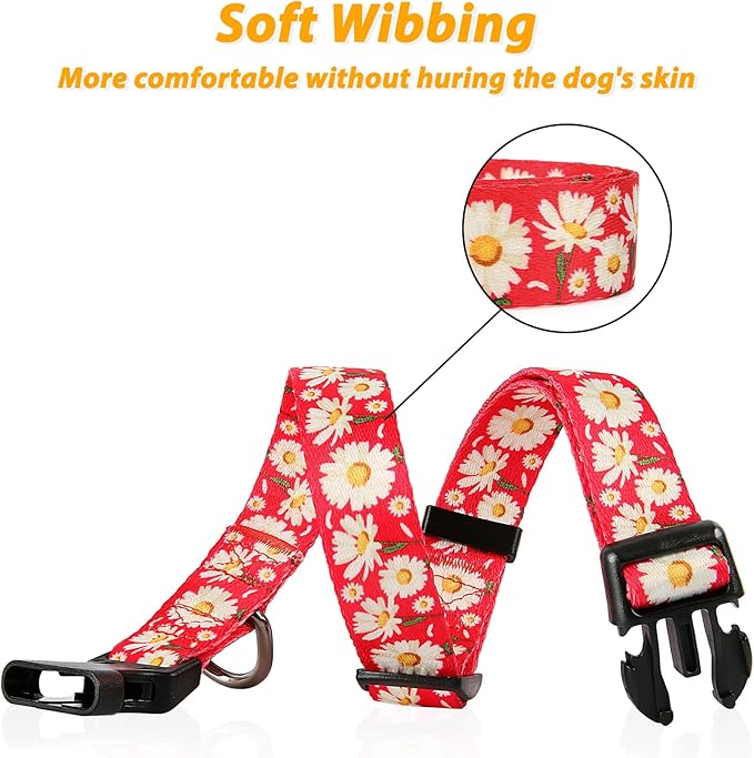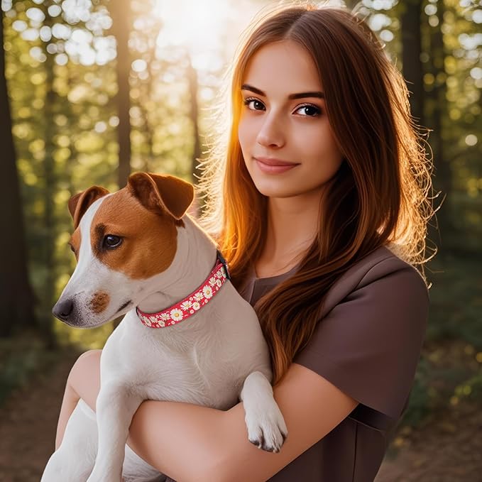 HEELE Dog Collar, Adjustable Soft Dog Collar for Small Medium Large Dogs,Daisy Floral Patterned Puppy Collars with Quick Release Buckle Daisy Red M Length 13.39''-20.87''