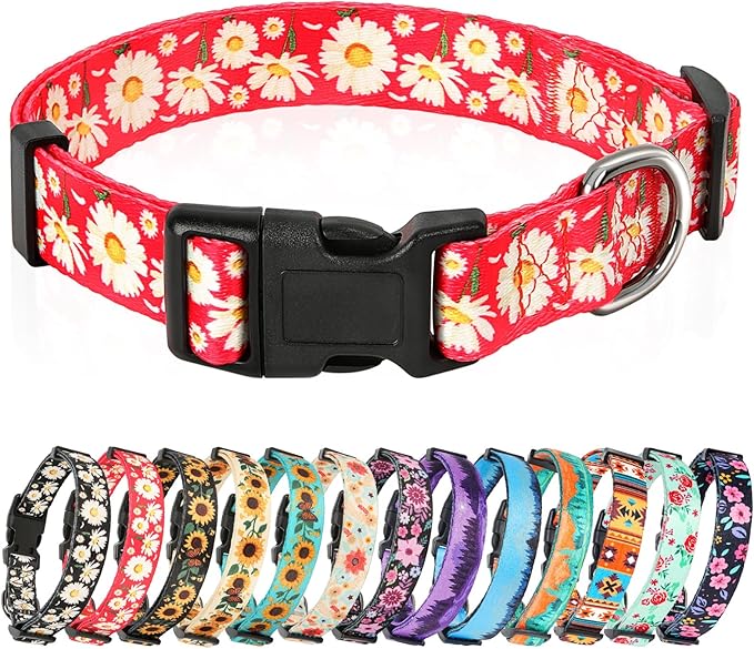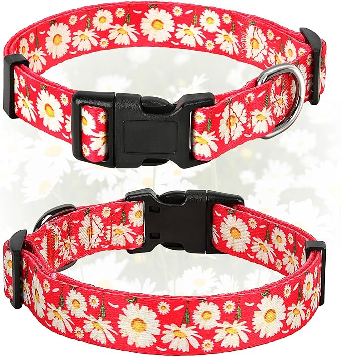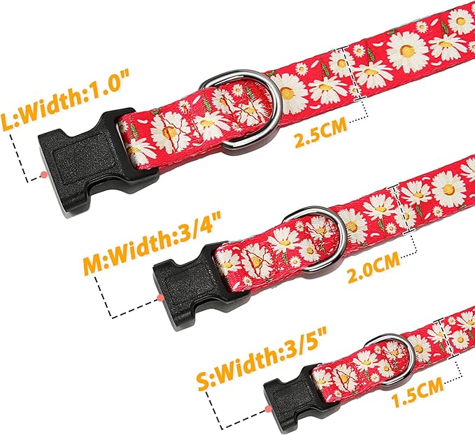 HEELE Dog Collar, Adjustable Soft Dog Collar for Small Medium Large Dogs,Daisy Floral Patterned Puppy Collars with Quick Release Buckle Daisy Red L Length 15.94''-25.59'