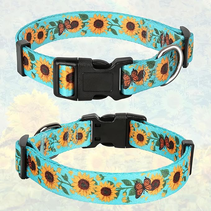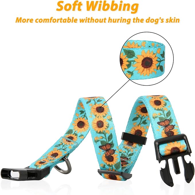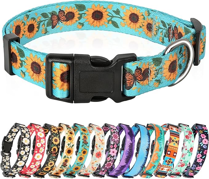 HEELE Dog Collar, Adjustable Soft Dog Collar for Small Medium Large Dogs,Sunflower Floral Patterned Puppy Collars with Quick Release Buckle Sunflower Green M Length 13.39''-20.87''