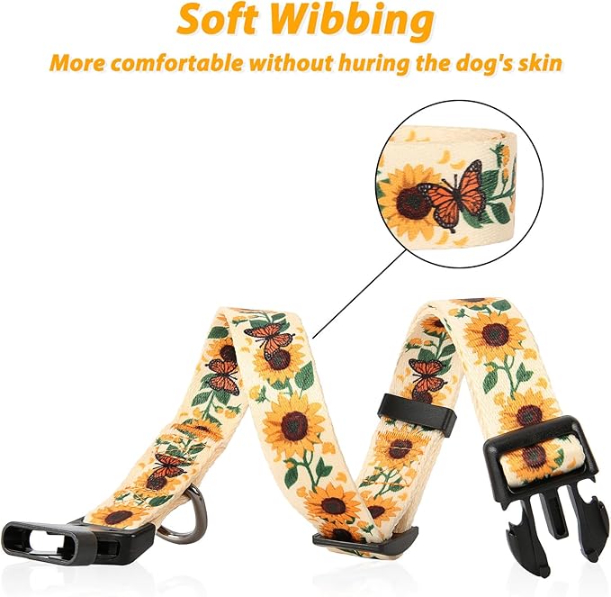 HEELE Dog Collar, Adjustable Soft Dog Collar for Small Medium Large Dogs,Sunflower Floral Patterned Puppy Collars with Quick Release Buckle Sunflower Yellow S Length 9.84''-14.96'
