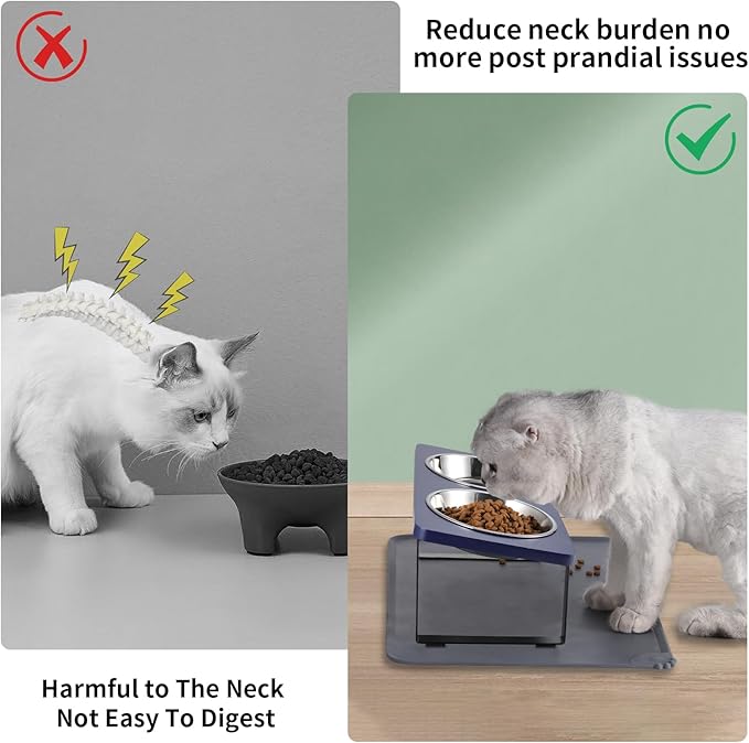 - 【15°TILTED Design】The 15°elevated cat bowls have been shown to be effective in relieving pressure on the cat's neck and stomach during eating, preventing vomiting and being suitable for digestion.It is more in line with the diet habits of kittens and puppies