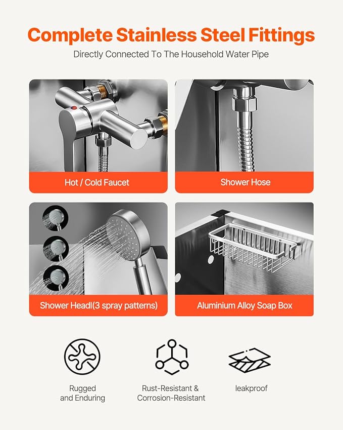 - Complete Accessories: This dog wash station comes with a showerhead, faucet, and a direct connection to a home hose, built for durability. It also includes a cleaning cloth, squeegee, brush, and gloves, ensuring your pet enjoys the full bathing experience