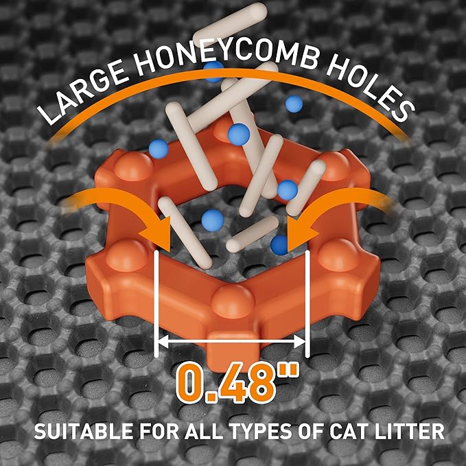 - 【Double Layer Honeycomb Construction】Double-layer honeycomb kitty litter mat can effectively trap loose litter from the box and cat paws. Moreover, the side-opening design allows you to tip the mat and pour the collected litter into the litter box, easily recycling it and reducing waste.