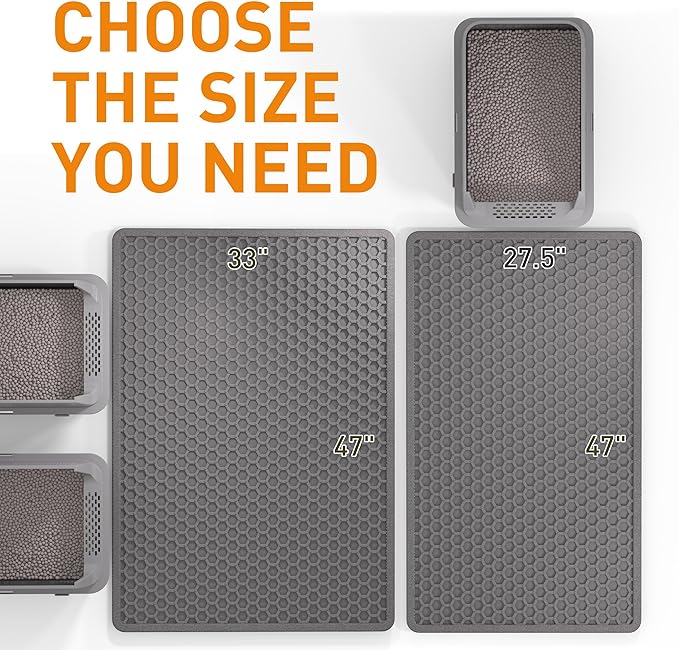 - 【Durable EVA Materials & Super Large Size】This 47"x33" large cat litter mat is made of premium EVA material that is ultra-soft, odorless, non-toxic, and resistant to cat scratches, not cheap foam-soft and safe for kitty's paws. Suitable for lots of type of litter box, such as kitty litter boxes, hooded or self cleaning litter box.