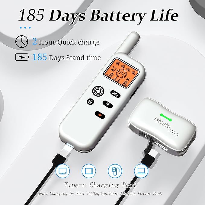 - 185-Day Battery & IPX7 Waterproof Collar】 Built for outdoor adventures – the "wireless dog fence receiver collar" charges fully in 2 hours, lasting 84+ hours in active mode (IPX7 waterproof for swimming/rain). Remote control supports 185-day standby to maintain invisible fence protection year-round.