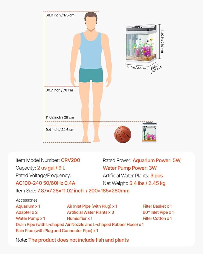 - Included Components : 90Β° Inlet Pipe x 1, Adapter x 2, Aquarium x 1, Filter Basket x 1, Water Pump x 1