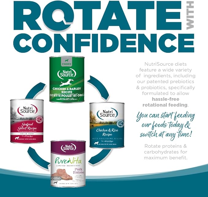 - PREMIUM INGREDIENTS- NutriSource canned dog foods always feature real meat as the #1 ingredient. Our Chicken & Rice recipe is a protein heavy, low carbohydrate diet suitable for all dogs