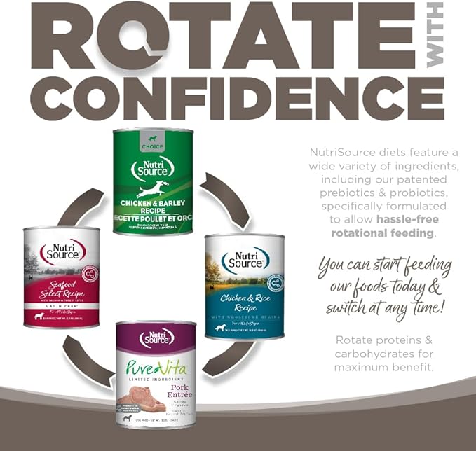 - PREMIUM INGREDIENTS- NutriSource canned dog foods always feature real meat as the #1 ingredient. Our Senior Chicken & Rice recipe is formulated to meet AAFCO guidelines for maintenance of adult dogs that are 7 years and older