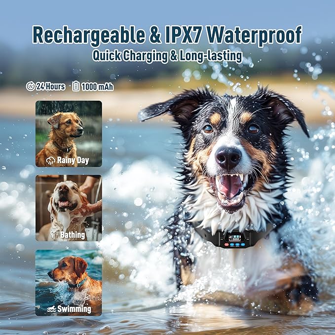 - [Rechargeable & IPX7 Waterproof]: The invisible fence collar is IPX7 waterproof and rechargeable with a battery life of up to 24 hours; The GPS signal must be three bars or more and only work outdoors without interference