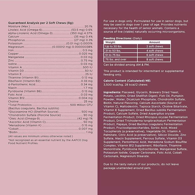 12-in-1 Multivitamin for Senior Dogs - 120 Senior Dog Vitamin and Supplement Soft Chews for Hip and Joint - Advanced Formula with Glucosamine, Omega 3,6,9, Vitamins, Probiotics - Made in The USA
